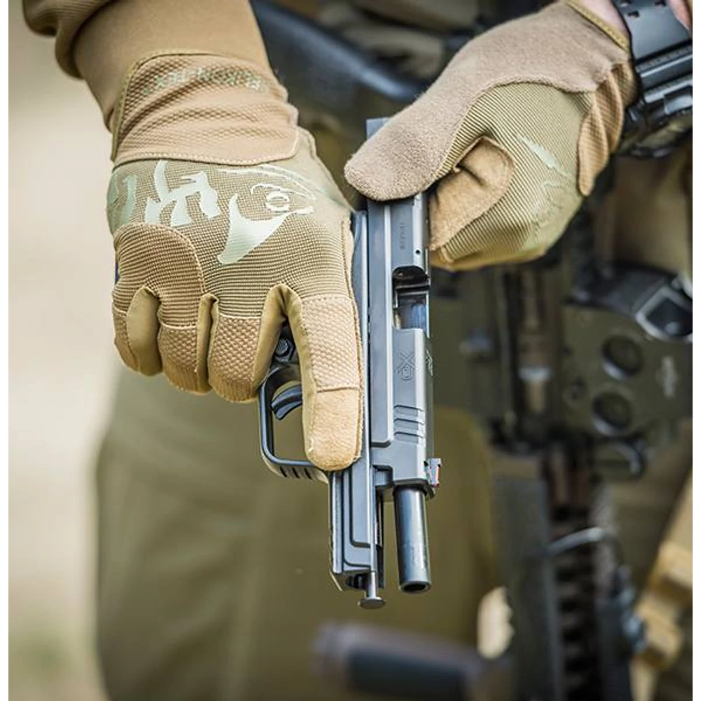 A Helikon-Tex® - All Round Fit Tactical Gloves® taktikai kesztyű - Coyote / Adaptive Green A univerzális taktikai lövészkesztyű, amelyeket úgy terveztek, hogy garantálják az elsütő billentyű tökéletes tapintását és érzékelését. A megfelelő anyagválasztásnak köszönhetően kiváló légáteresztő képességet és kényelmes használatot biztosít. A kéz belső oldala szintetikus bőrből készült a hosszan tartó használat érdekében. Az elasztikus mandzsetta zárórendszer nélkül lehetővé teszi a kesztyűk könnyű fel- és levételét, illetve karórával való viselését.