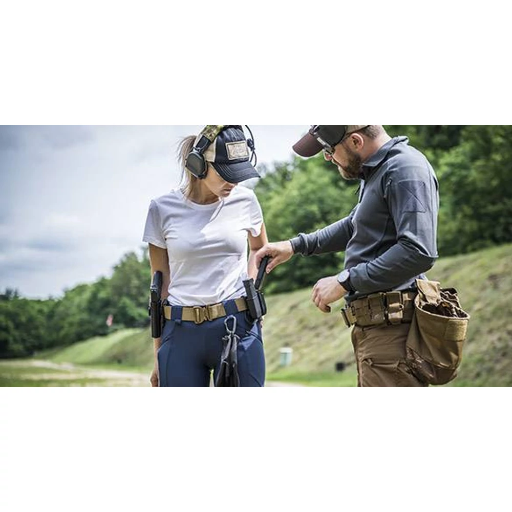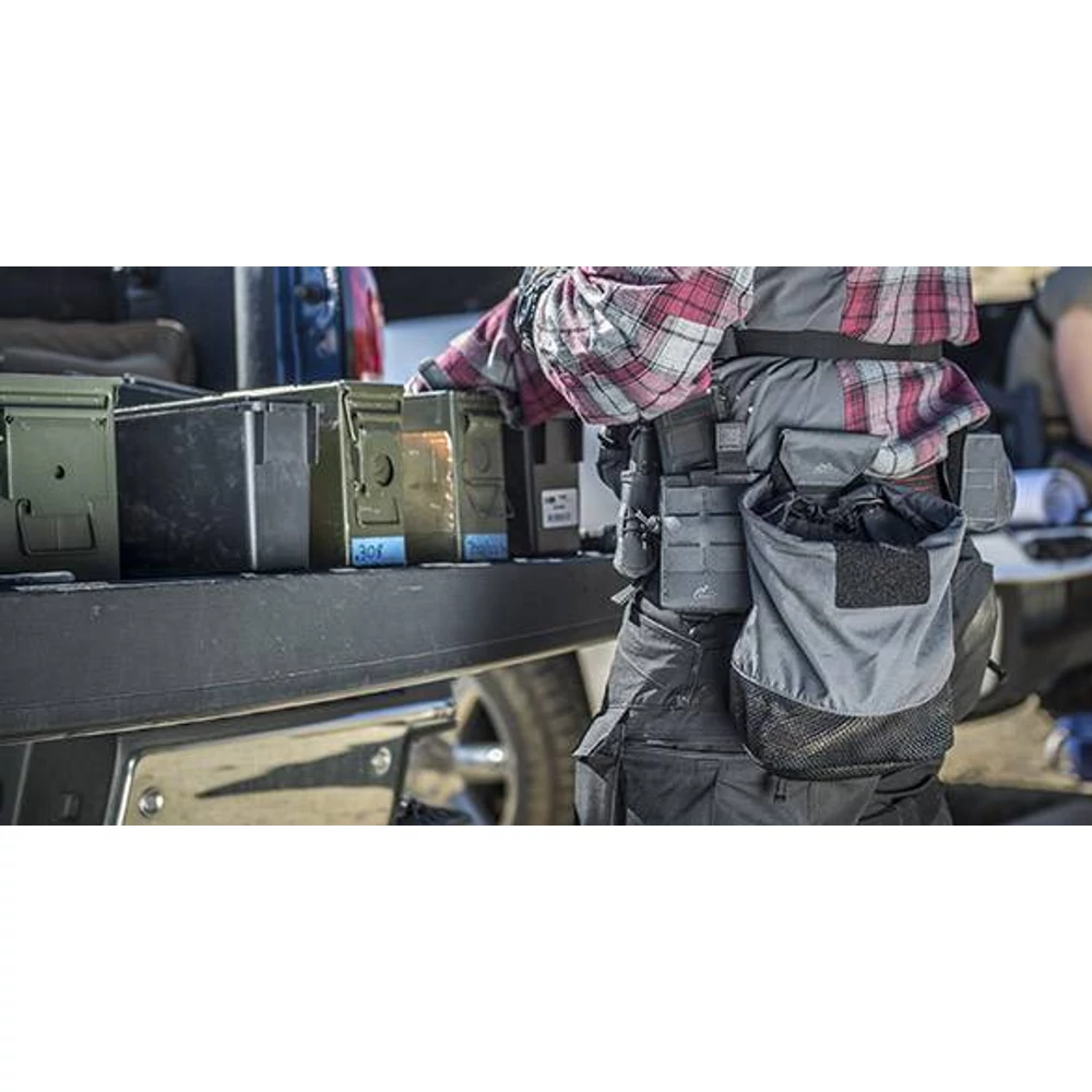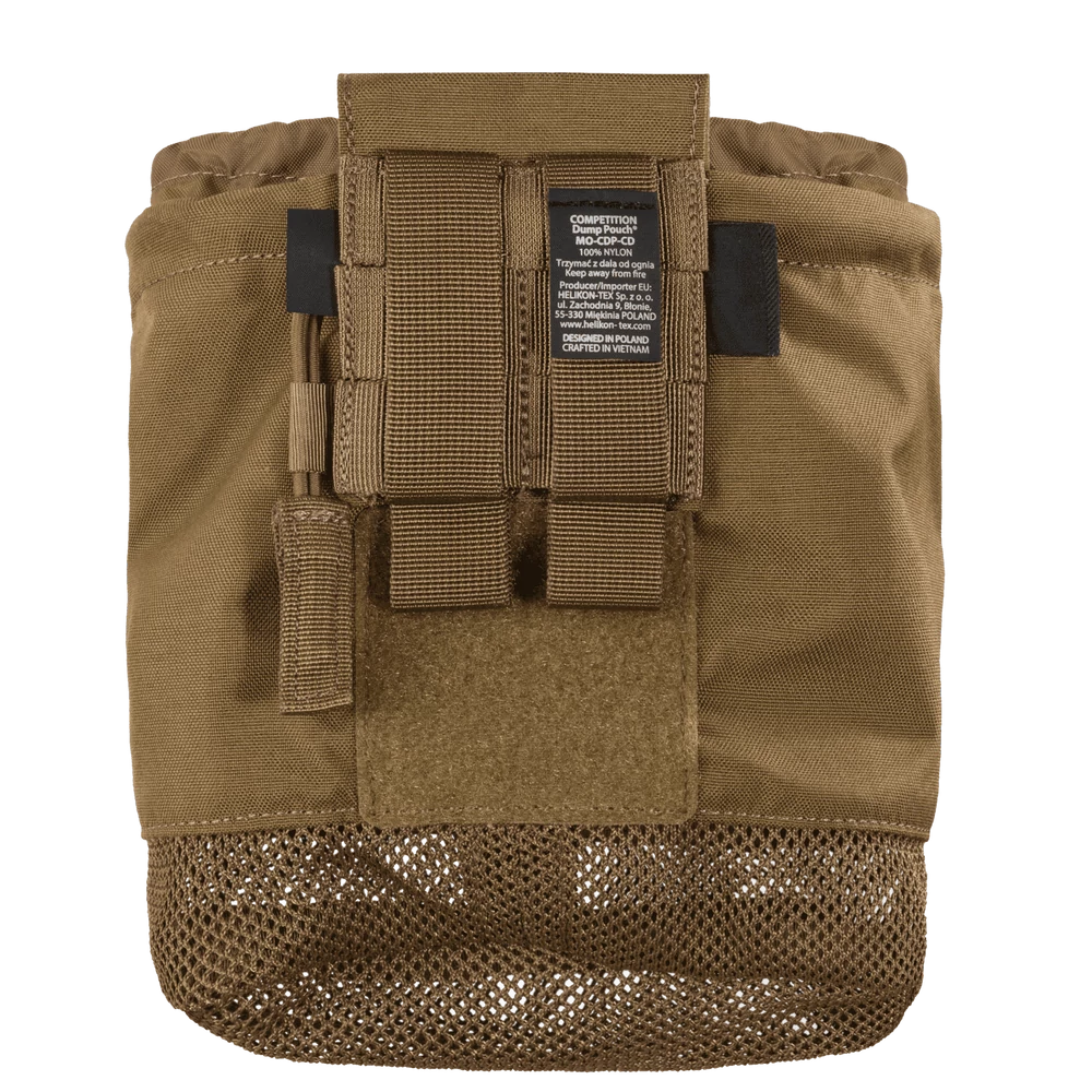 A Helikon-Tex® - COMPETITION Dump Pouch® - Tárdobó Zseb (Olive Green) az egyik alapvető része a Helikon-Tex® COMPETITION összeállításának. A tárdobó kifejezetten kiképzési, illetve versenyszituációkra készült, melyeknél kiemelt szerep jut a dinamikus, gyors, precíz végrehajtásnak. Alkalmas bármely tár befogadására, legyen az gépkarabély, géppisztoly, vagy pisztoly tár. Merevített, zsinórral ellátott gallér megkönyíti a tárak elhelyezését stresszhelyzetben. A tárdobó alsó része hálós kialakítású, mely segít megakadályozni a szennyeződések felhalmozódását. Helikon-Tex® - COMPETITION Dump Pouch® elég nagy méretű ahhoz, hogy alternatív módon használva fültokot, kesztyűt stb. tároljanak benne. A tárdobó zseb MOLLE/PALS kompatiblis, illetve közvetlenül rögzíthető taktikai övre 45 mm szélességig.