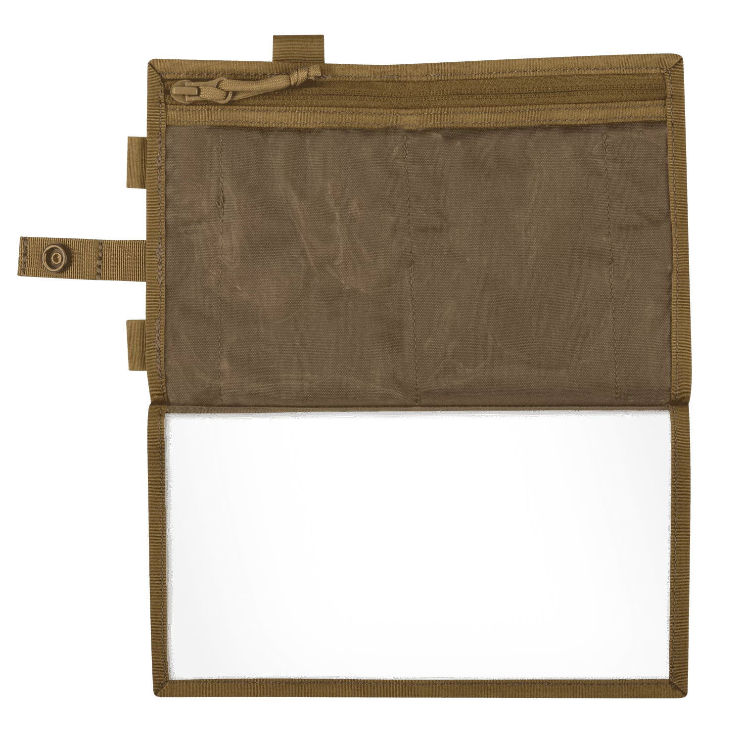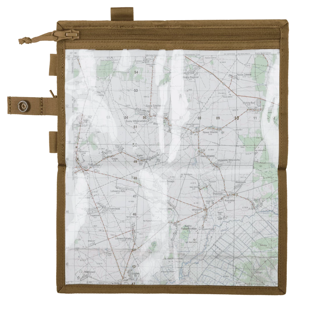 A Helikon-Tex® - Map Case - Cordura® - Térképtartó (Coyote) egy kompakt tasak, amely lehetővé teszi, hogy térképét egy átlátszó, cipzáros belső zsebben vigye, és minden időjárási körülmény között megóvja azt. A tasak tartós, 500D Cordura® anyagból készült. Kívül két patentos gombokkal záródó zseb és két nyitott, kisebb zseb található. Ezenkívül az oldalán hurkok találhatók tollnak és egyéb kiegészítőknek. Használaton kívül a Map Case félbehajtható és pattintógombbal rögzíthető.