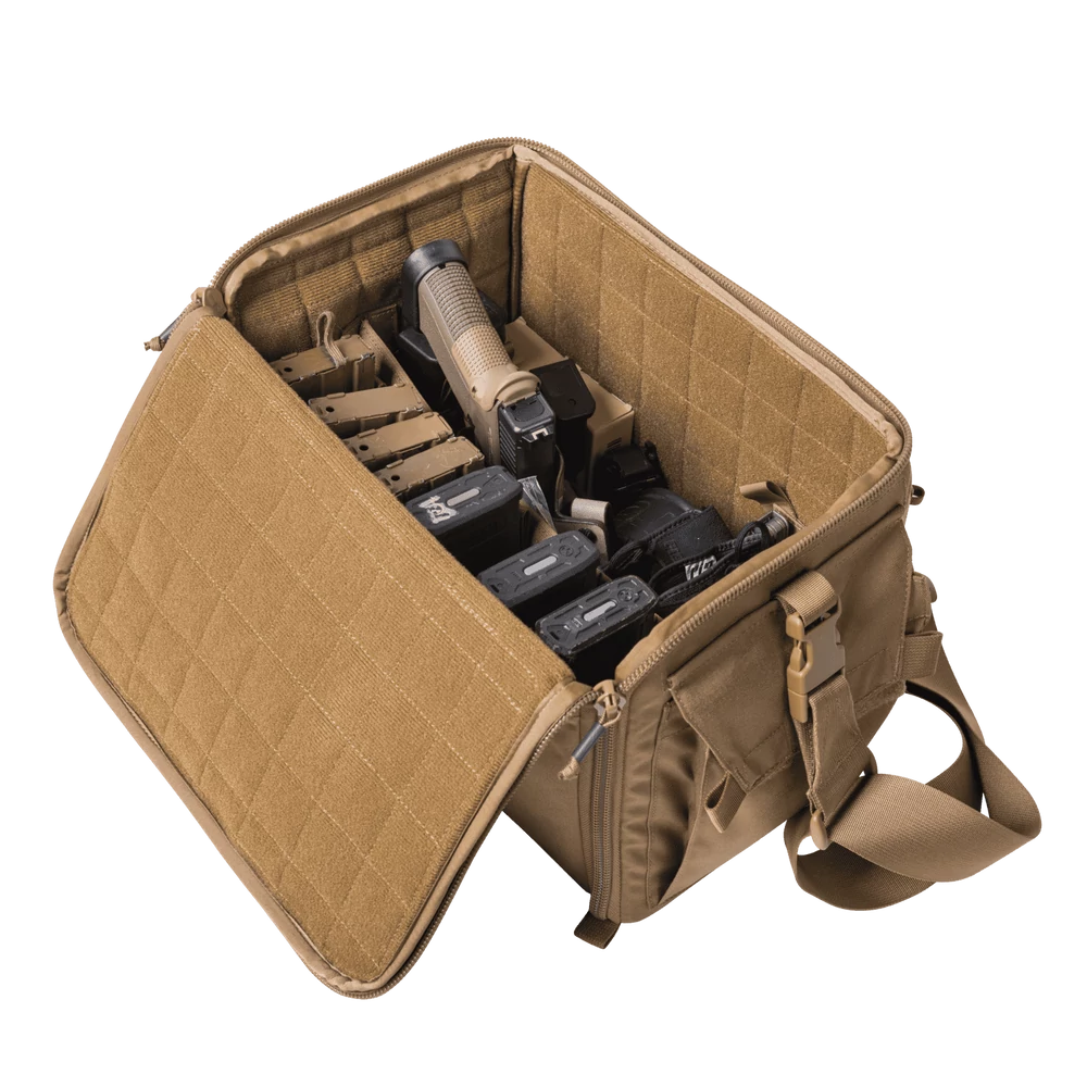 A Helikon-Tex® - RANGE Bag® - Cordura® - MultiCam® - Lőtéri Táska (MultiCam®) kompakt, lőfegyverrel foglalkozó szakemberek számára kifejlesztett táska. Univerzális tártartó zsebekkel rendelkezik. Ezt a táskát úgy tervezték, hogy egyfajta „munkaállomást” képezzen: az egyik oldala teljesen kinyílik, így gyorsan és könnyen hozzáférhet a felszereléshez.
