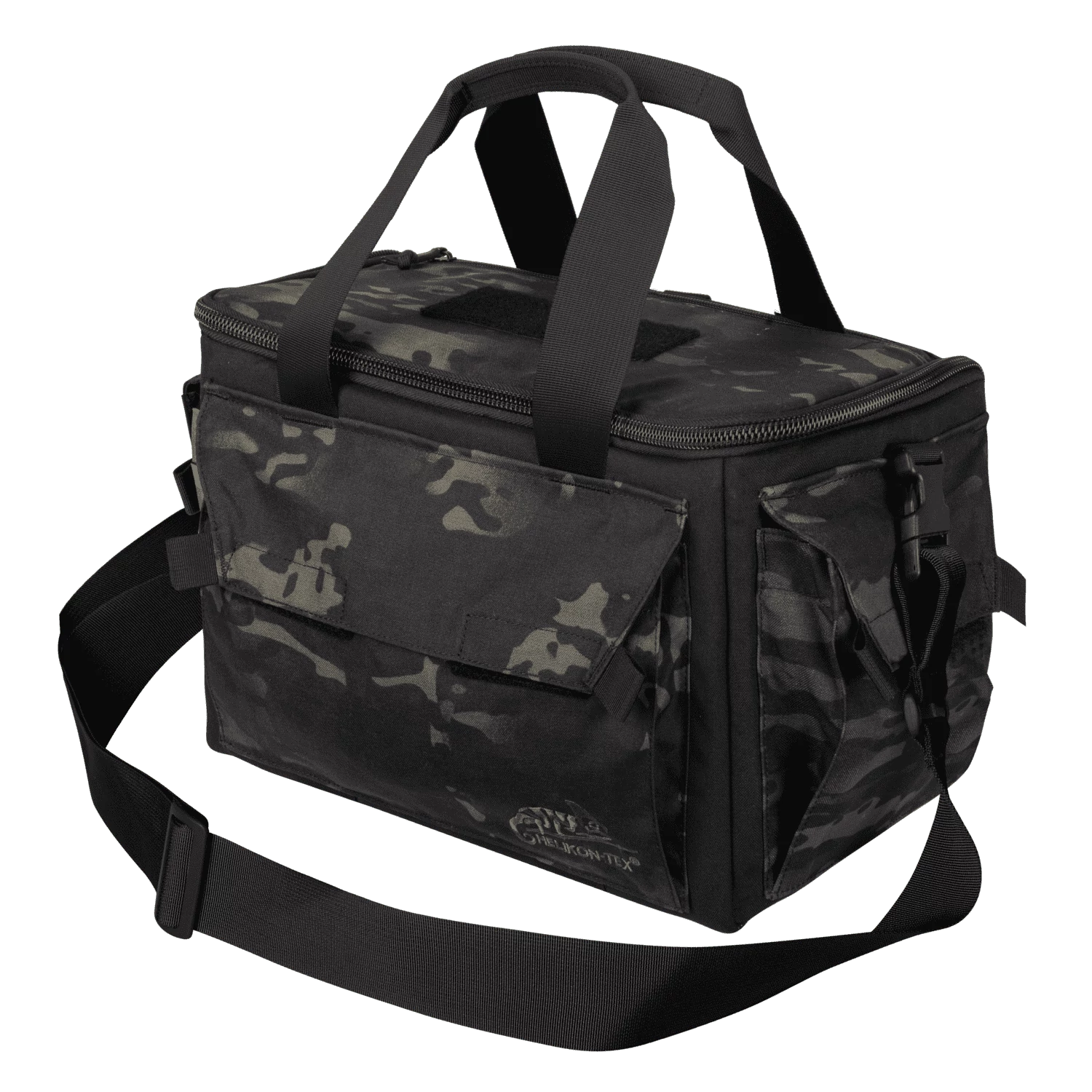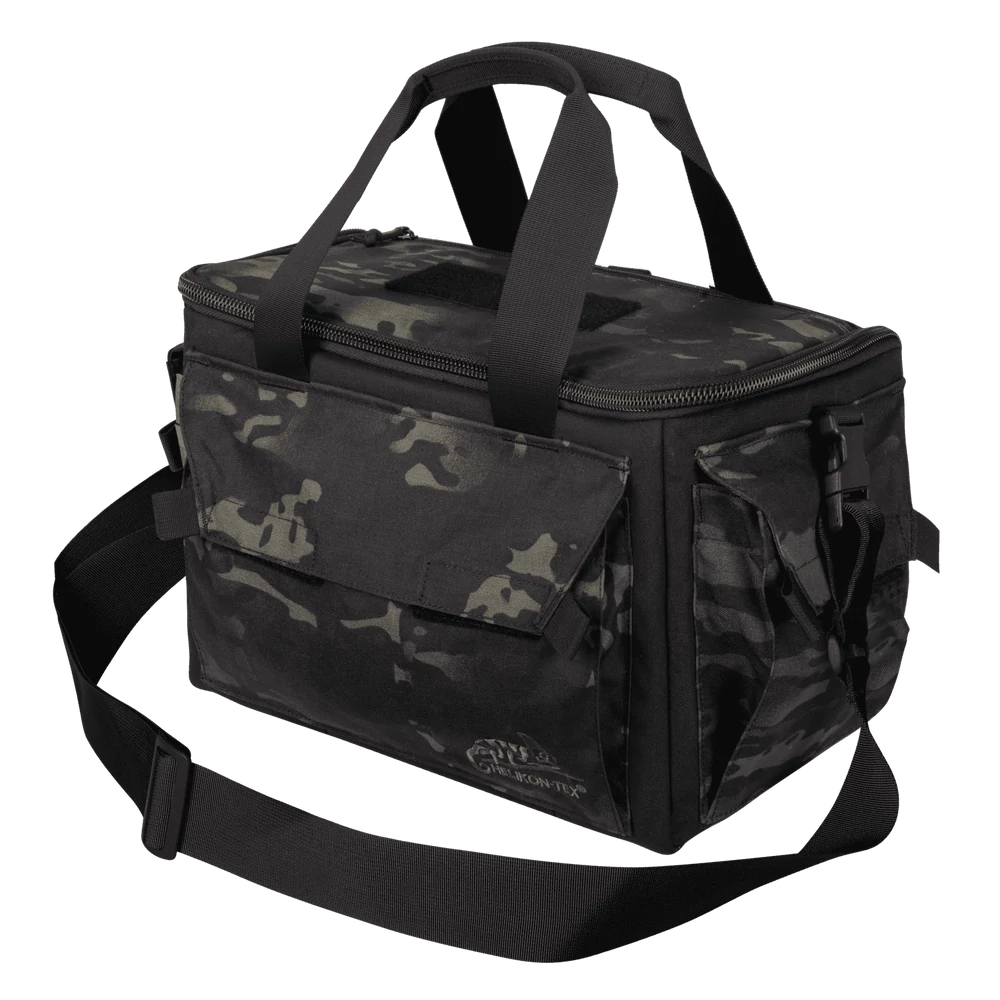 A Helikon-Tex® - RANGE Bag® - Cordura® - MultiCam Black™ / Black A - Lőtéri Táska (MultiCam® Black™) kompakt, lőfegyverrel foglalkozó szakemberek számára kifejlesztett táska. Univerzális tártartó zsebekkel rendelkezik. Ezt a táskát úgy tervezték, hogy egyfajta „munkaállomást” képezzen: az egyik oldala teljesen kinyílik, így gyorsan és könnyen hozzáférhet a felszereléshez.
