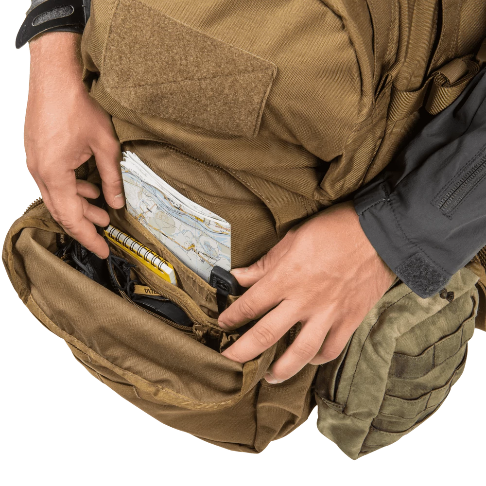 A nagy főrekesz kompatibilis a legtöbb hidratációs tasakkal (csőkivezetés). Két további külső tárolórekesszel rendlkezik, így elősegítve további felszerelések rendszerezett tárolását és biztosítva azok gyors elővételét. A táska elülső és oldalsó részein MOLLE/PALS hevederrendszer található, mely alkalmassá teszi további MOLLE/PALS rendszerű kiegészítő felszerelését, ezzel növelve a tárolókapacitást és biztosítva sokoldalúságot. Az elülső részen található tépőzáras felület segítségével személyre szabható a táska. A merevített, puha hátrész, a tartós jól profilozott vállpántok nagyfokú kényelmet biztosítanak huzamossabb használat esetén is. A levehető deréköv tovább fokozza a táska stabilitását és súlyelosztását.