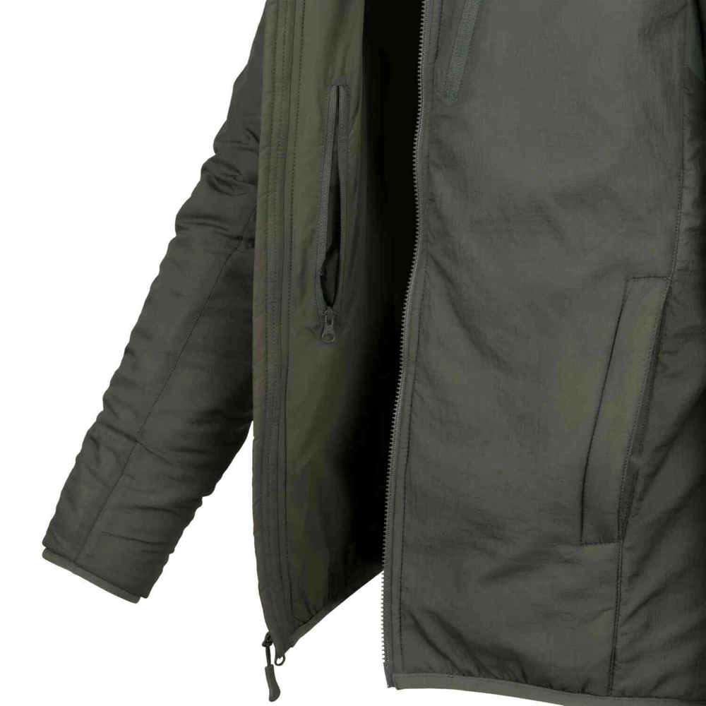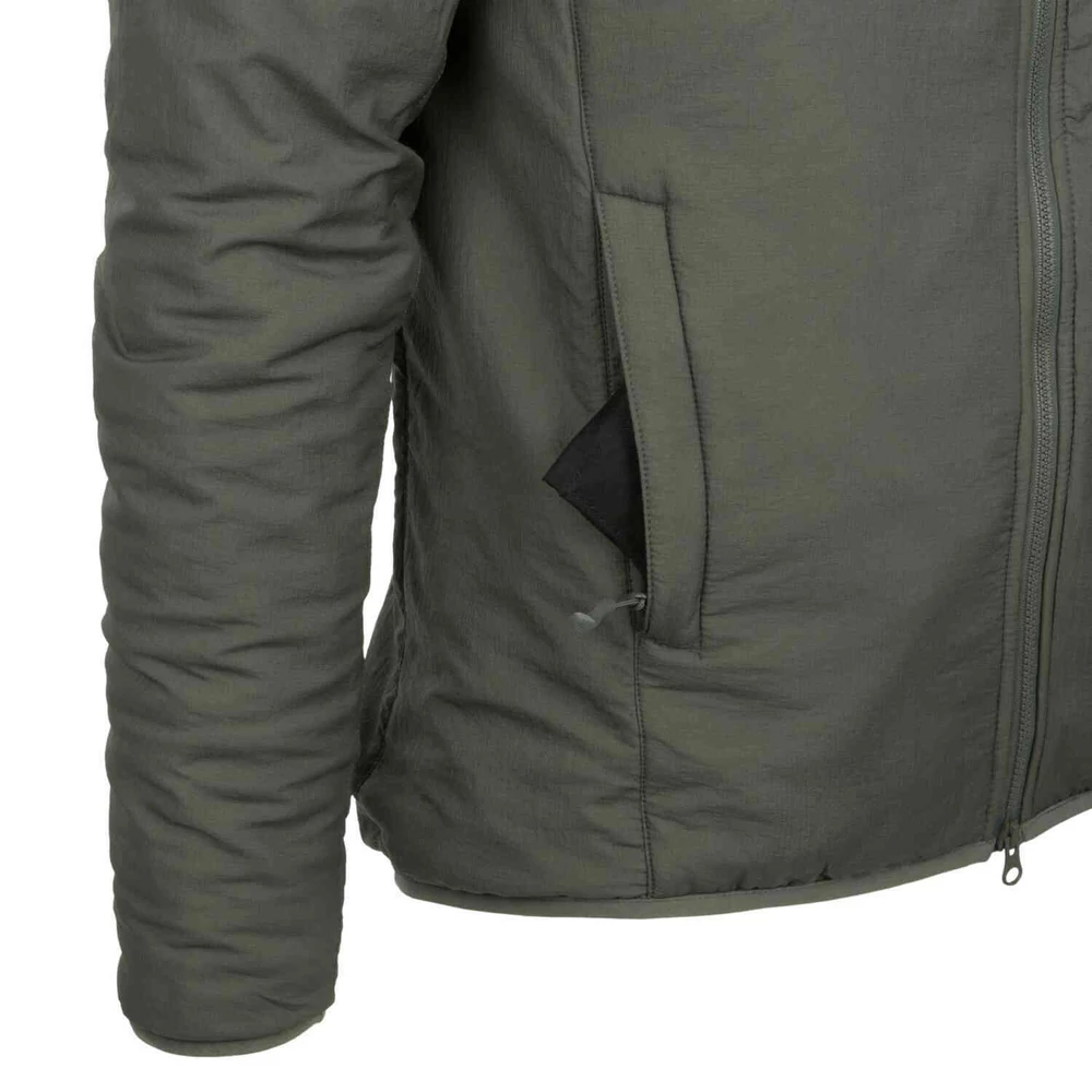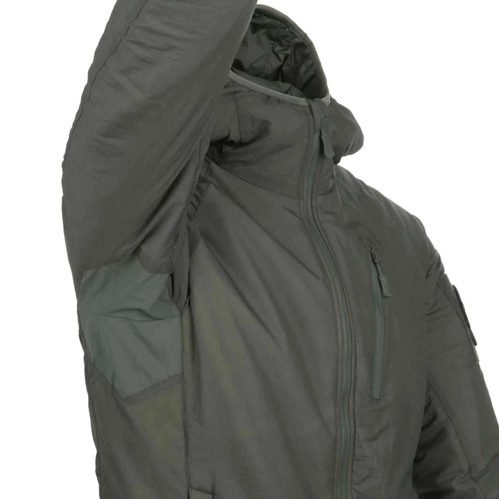 Az újratervezett, Helikon-Tex® - WOLFHOUND Hoodie Jacket® - Climashield® Apex 67g - Kapucnis Kabát (Tiger Stripe) hosszú túrákhoz és mindennapi használatra egyaránt kiváló választás. Jól illeszkedik külső rétegnek vagy kiegészítő rétegnek, ha vízálló kabáttal viseljük. 67g/m2 ClimashieldTM Apex® anyaggal bélelt, amely még teljesen nedves állapotban is melegen tartja. A profilozott és állítható kapucni egy további puha szemellenzővel rendelkezik. A kabát négy cipzáras zsebbel rendelkezik – három külső és egy belső. A hónalj VersaStretch® anyagból készült a fokozott kényelem érdekében.