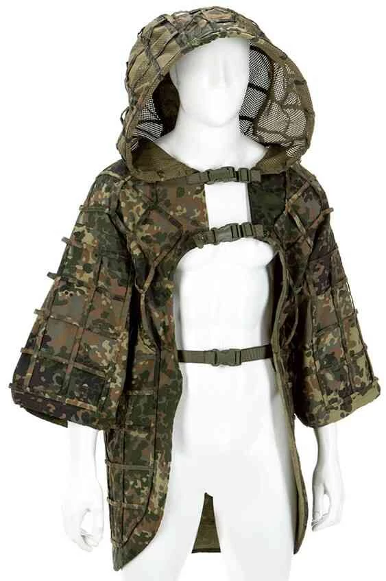 Invadergear - Ghillie Base Plain - Ghillie Álcaruha (Flecktarn) kiváló álcázóképességgel rendelkezik, személyre szabható a hevederekkel, valamint a rugalmas állító zsinórokkal. Elsősorban hobbi célú felhasznalásra ajánlott (airsoft).