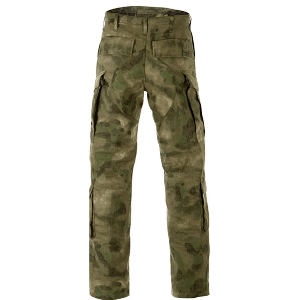 Nagy méretű, széles övbújtatóval. Két - gombbal zárható-nyitható - farzsebbel, két tépőzáras, húzózsinórral ellátott oldalzsebbel, tovább mindkét lábsszáron egy-egy tépőzáras mini zsebbel. Erősített (dupla anyag) térdrész, a piacon kapható legtöbb térdvédő elhelyezésére alkalmas. A nadrág szárában található textilzsinór segítségével személyre szabható bokarész.