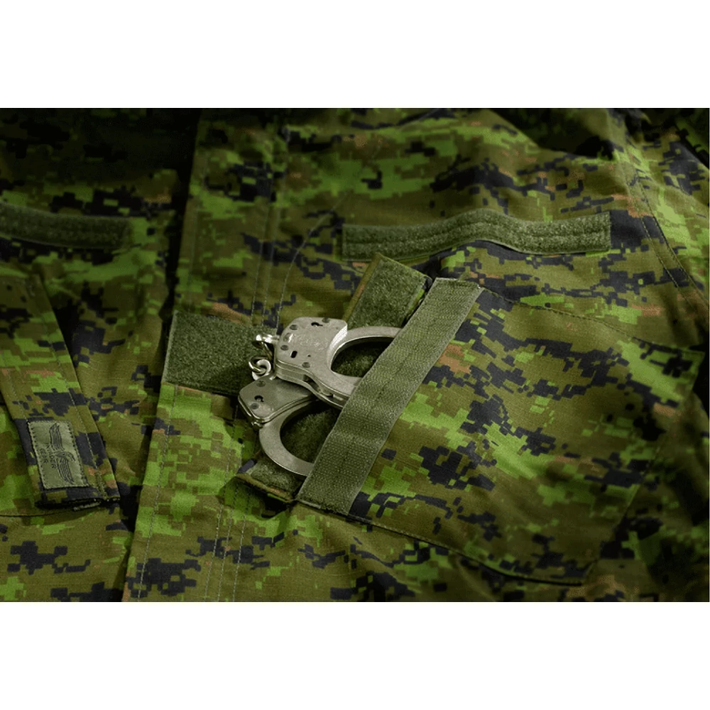 Két nagy méretű tépőzáras mellkaszseb, valamint tépőzáras helyek a személyre szabás érdekében. Ezenkívűl tépőzáras felkar zseb, valamint 3 apró méretű tárgy (pl.: toll, ceruza) elhelyezésére alkalmas alkarzseb. Tépőzáras kialakítású csuklórész. Erősített könyökrész, amely alkalmas védőszivacs befogadására.