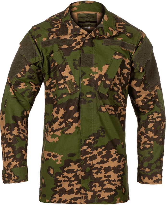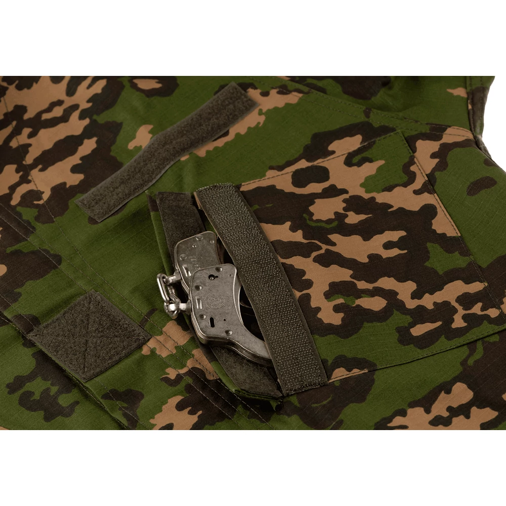 Két nagy méretű tépőzáras mellkaszseb, valamint tépőzáras helyek a személyre szabás érdekében. Ezenkívűl tépőzáras felkar zseb, valamint 3 apró méretű tárgy (pl.: toll, ceruza) elhelyezésére alkalmas alkarzseb. Tépőzáras kialakítású csuklórész. Erősített könyökrész, amely alkalmas védőszivacs befogadására.