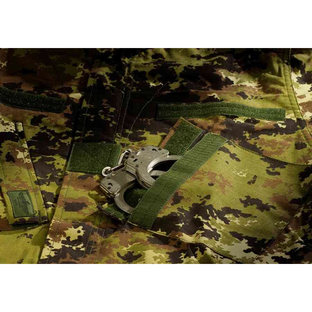 Tépőzáras kialakítású gallér. Két nagy méretű tépőzáras mellkaszseb, valamint tépőzáras helyek a személyre szabás érdekében. Ezenkívűl tépőzáras felkar zseb, valamint 3 apró méretű tárgy (pl.: toll, ceruza) elhelyezésére alkalmas alkarzseb. Tépőzáras kialakítású csuklórész. Erősített könyökrész, amely alkalmas védőszivacs befogadására.