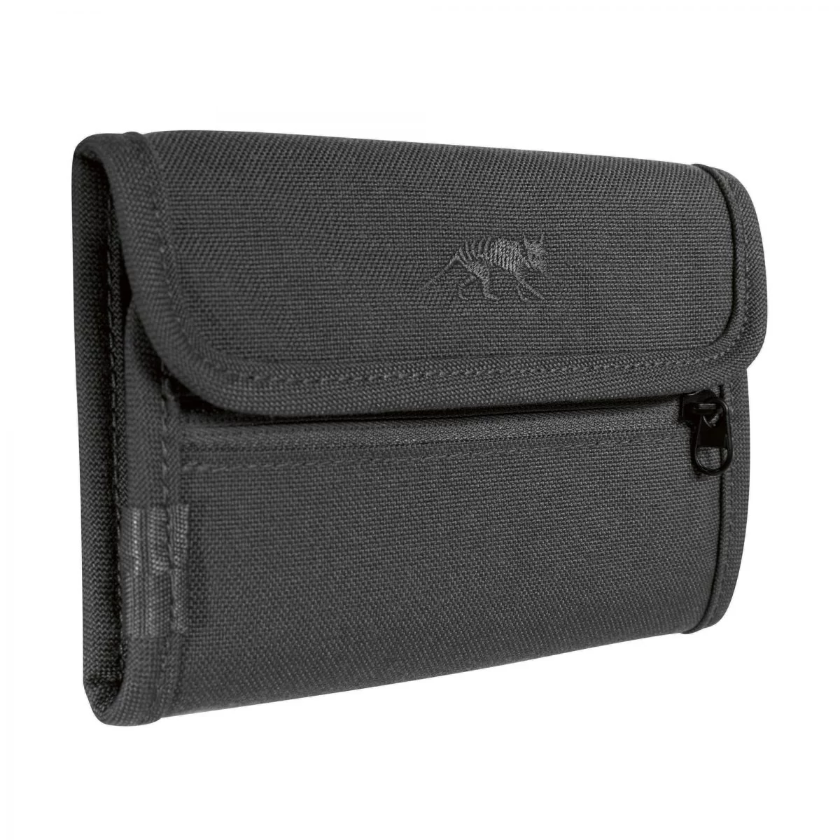 Tasmanian Tiger® - ID WALLET - Pénztárca/Igazolványtartó (Black) kihajtható pénztárca, hátul átlátszó rekesszel. A bankkártya/plasztik kártyák, valamint a nagy és kis pénzek tárolására alkalmas két cipzáras rekesz mellett ennek a nagy pénztárcának a hátoldalán van egy átlátszó rekesz a személyi igazolvány számára.