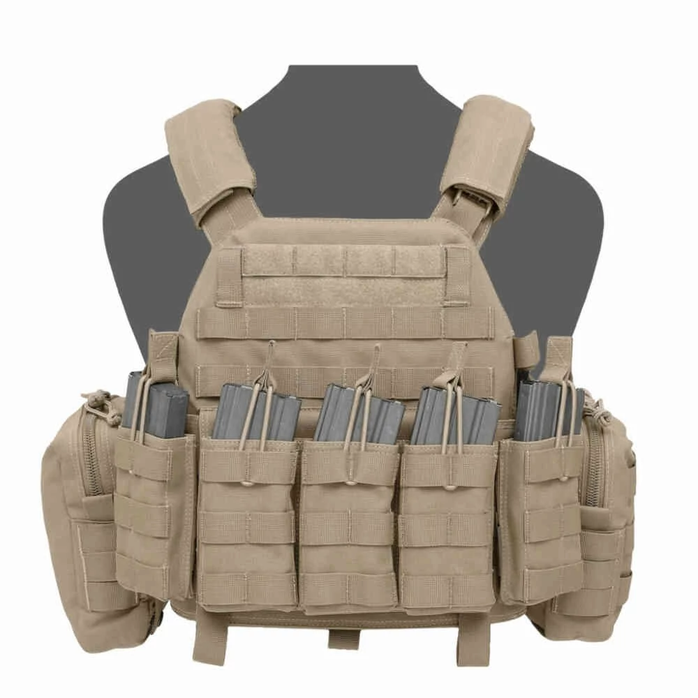 A Warrior Assault Systems® - DCS DA5.56 - Taktikai Mellény (Coyote Tan) az európai régió legismertebb professzionális taktikai mellénye. Mindent kielégítő, kompakt felszerelés. Alacsony profilú, strapabíró, professzionális minőségű felszerelés. Kialakításában különleges műveleti operátorok is részt vettek. A vállrész, valamint a derékrész is állítható, ezáltal személyre szabható. Szabványos SAPI kerámiabetét elhelyezhető benne.