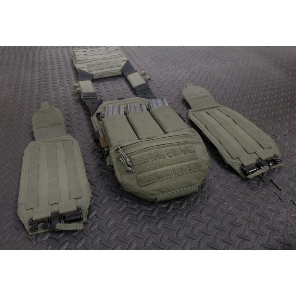 A"Quick Release" System lehetővé teszi a mellény gyors eltávolítását napi szinten, de vészhelyzetben is, nincsenek bonyolult kábelek és az összeszerelés csupán másodperceket vesz igénybe. Alapkivitelben leszerelhető MOLLE elülső panellel, amelyet 2 függőleges QASM csat és tépőzár rögzít, amelyek lehetővé teszik a panel eltávolítását és cseréjét előre konfigurált panelek széles választékával, amelyek fegyver- és küldetésspecifikusak. Elől és hátul is elhelyezhető "PLATE" (nem tartozék!)